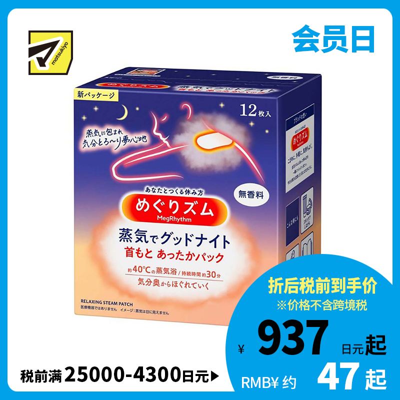 [商品名称]Kao花王 美舒律蒸汽肩颈贴 缓解肩颈疲劳酸痛发热贴热敷贴无香12片
