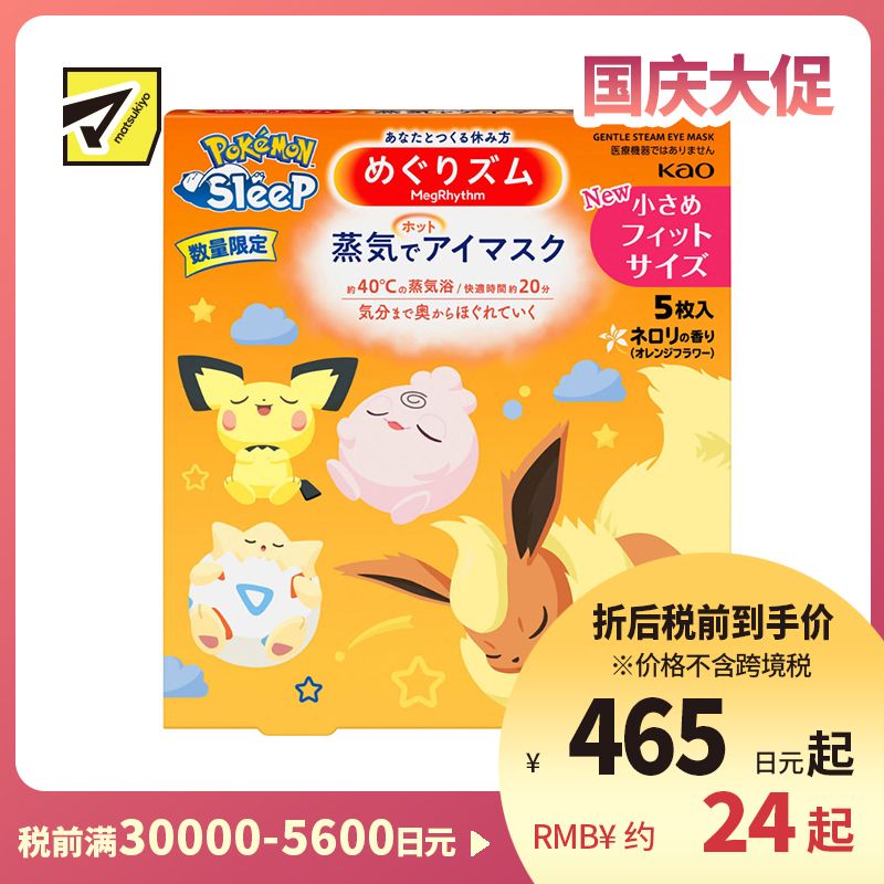 [商品名称] 花王美舒律 缓解眼疲劳 蒸汽眼罩 宝可梦图案 橙花香 5片 花王 Kao 温润蒸汽 改善黑眼圈 助眠热敷贴