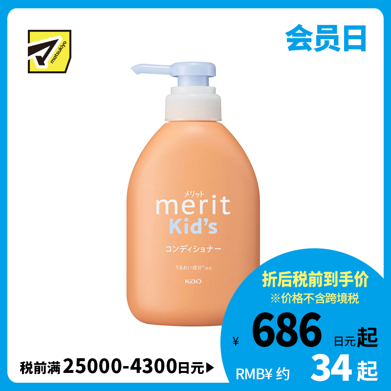 [商品名称] 花王merit 植物保湿成分 防打结配方 易冲洗速干 儿童护发素 360ml 弱酸性 专为儿童细软发质设计 润养柔顺 无添加