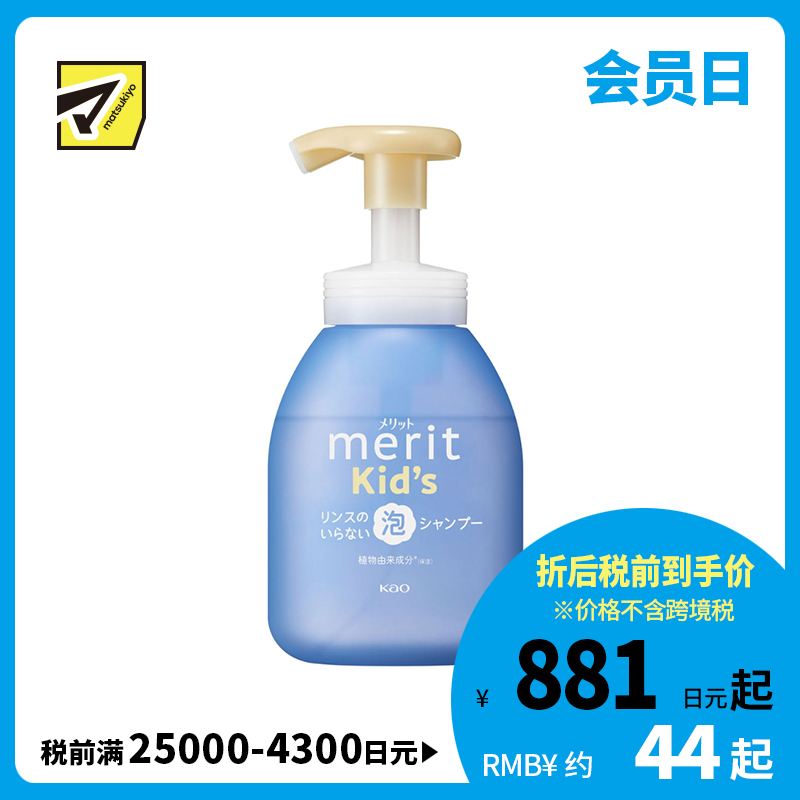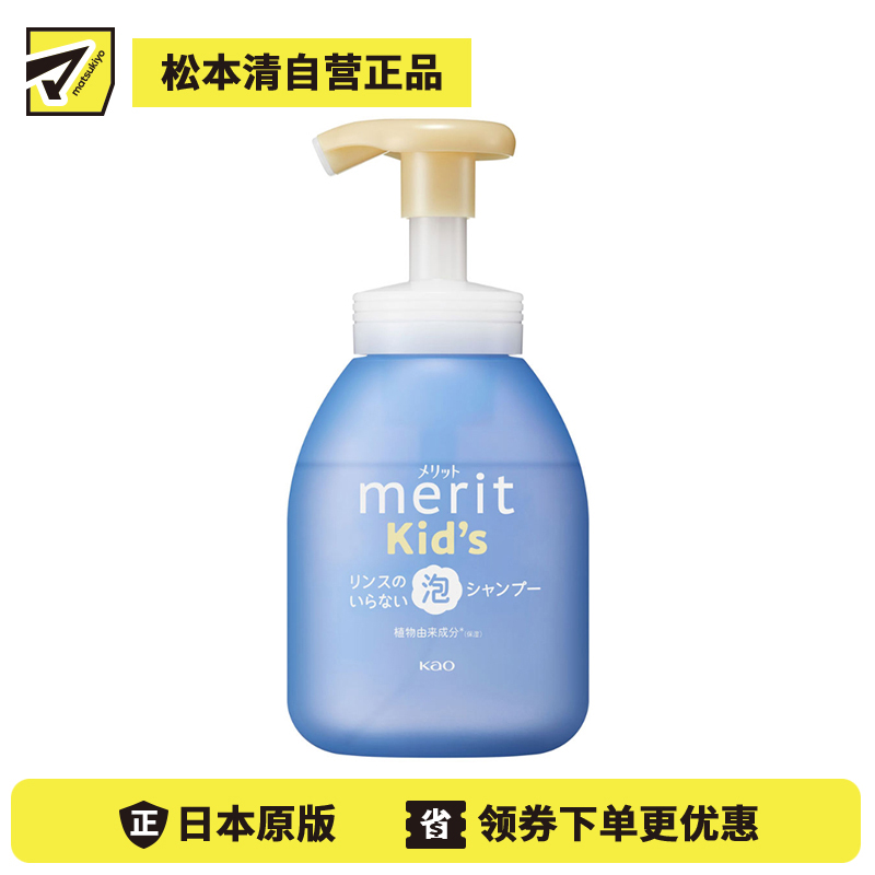 [商品名称] 花王merit 洗护合一 防汗清爽 弱酸性 防打结 儿童泡沫洗发水 330ml 去除头皮异味 植萃保湿配方 无添加