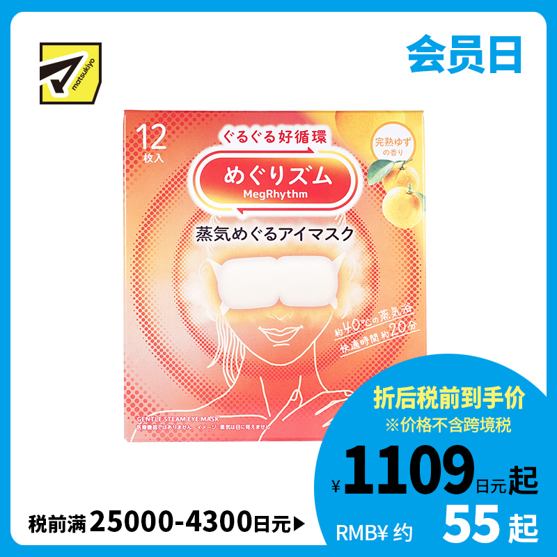 [商品名称] 花王 舒适热敷 服贴设计 缓解眼疲劳 美舒律蒸汽眼罩 完熟柚子香 12片 Kao 恒温蒸汽 极柔软材质 助眠热敷 放松眼部 缓解压力