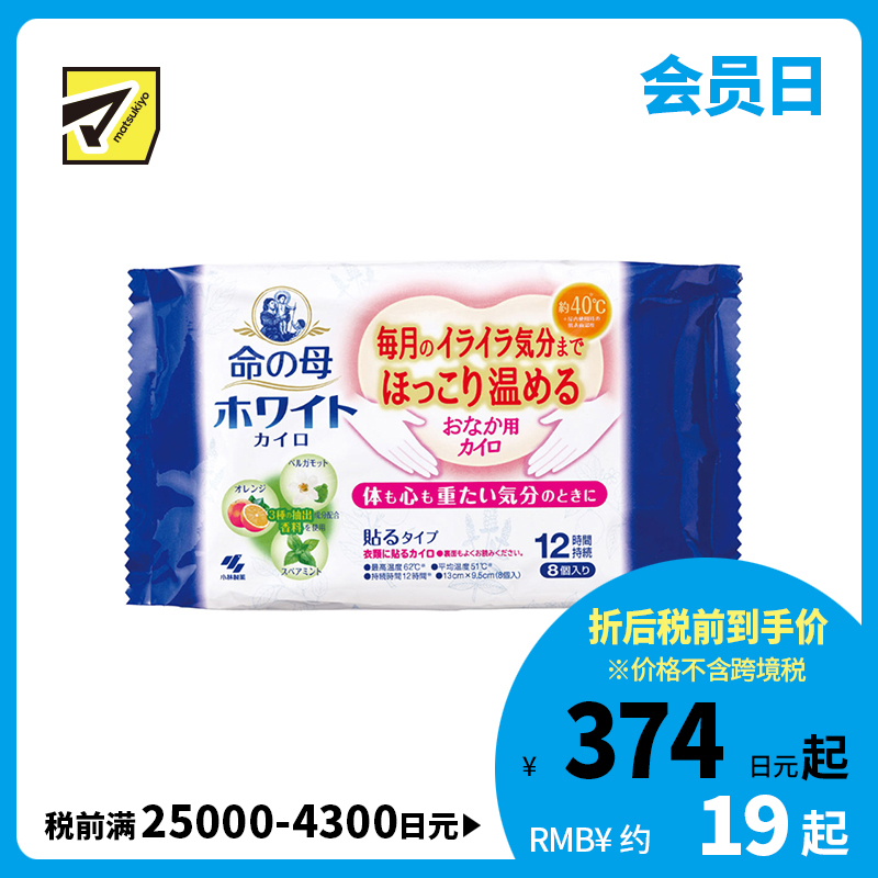 [商品名称]小林制药 桐灰 命之母 缓解烦躁 驱寒保暖 生理期用暖宫贴 黏贴型 可持续12小时 香皂薄荷果香 8片 经期姨妈期 发热贴 保暖贴 暖身贴 暖宫贴