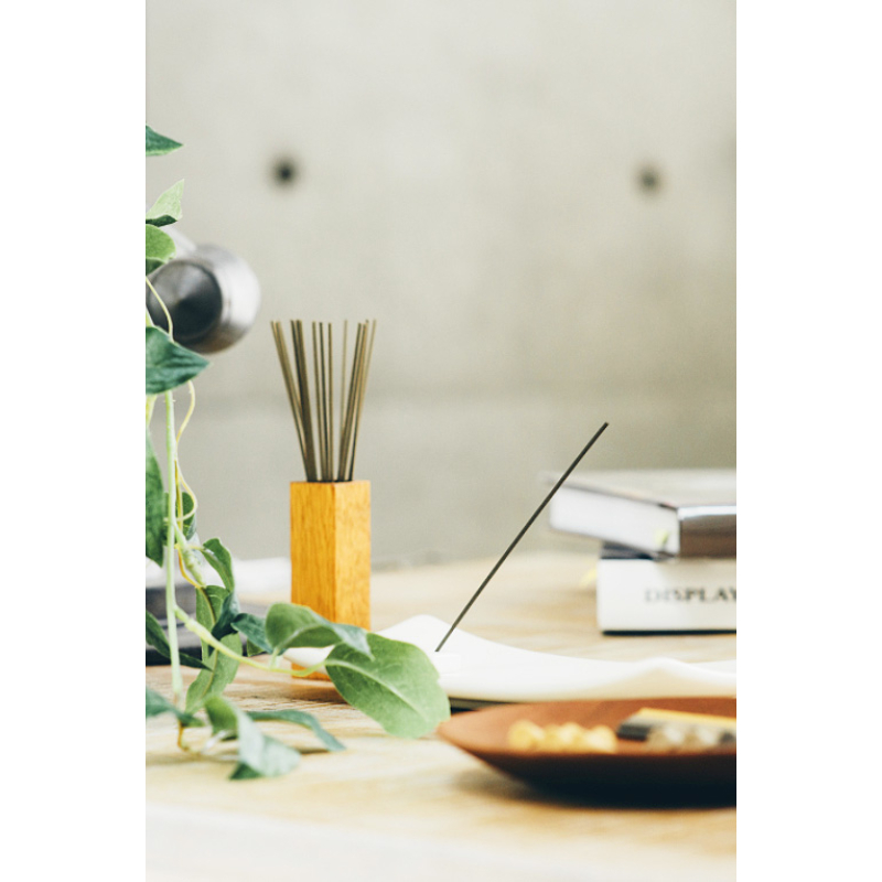 将线香的端部点燃后,轻轻吹灭火焰,让其冒烟,并垂直立放于不燃性容器的香炉上。如果同时使用多根线香,请确保它们之间至少保持1厘米的间隔。
