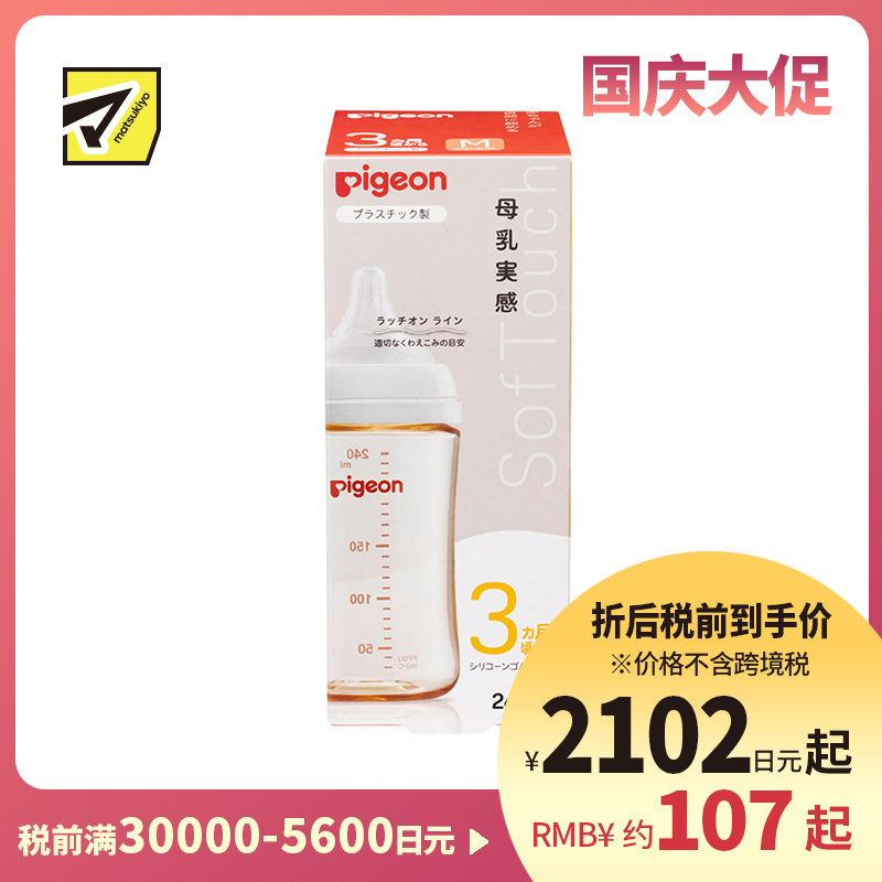 [商品名称]贝亲 母乳衔接辅助 轻盈材质 PPSU塑料婴儿奶瓶 M号 240ml Pigeon 母乳实感系列 防摔防胀气 易清洗 宽口径