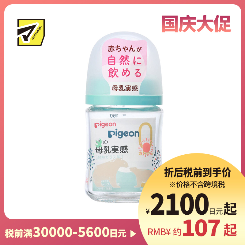 [商品名称]贝亲 母乳衔接辅助 易清洗 耐热玻璃奶瓶 彩绘小熊图案 SS号 160ml Pigeon 防胀气 宽口径