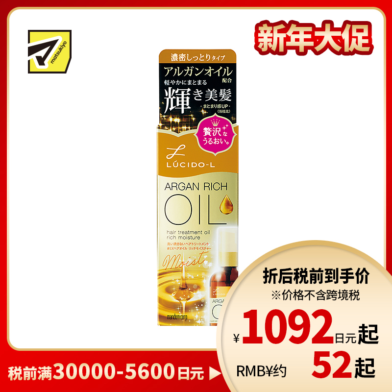 1号仓-漫丹俪诗朵 持久保湿轻顺亮泽 摩洛哥免洗护发精油 超滋润型 60ml Mandom Lucido 曼丹 防晒隔离高温受损