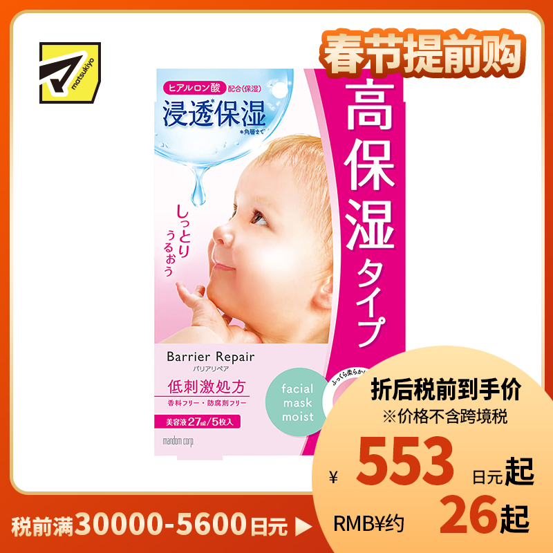[商品名称] Mandom漫丹 曼丹 婴儿肌 玻尿酸超保湿补水面膜 粉色款 5片