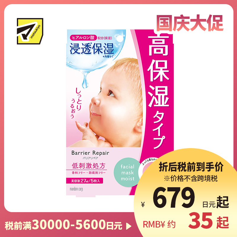 [商品名称] Mandom漫丹 曼丹 婴儿肌 玻尿酸超保湿补水面膜 粉色款 5片