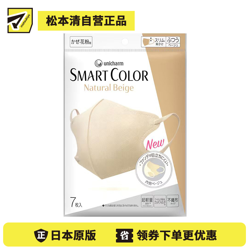 [商品名称]UNICHARM尤妮佳 超快适轻薄立体型小颜清凉口罩7枚装裸色