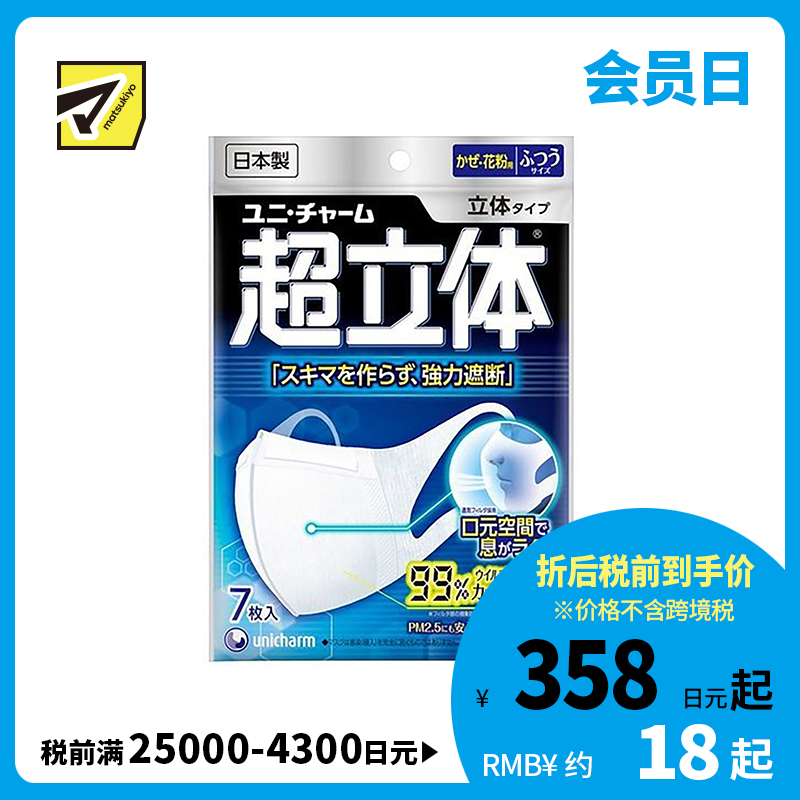 [商品名称]UNICHARM尤妮佳 超立体薄款透气防脱妆小颜清凉防飞沫超立体口罩 普通尺寸 7个