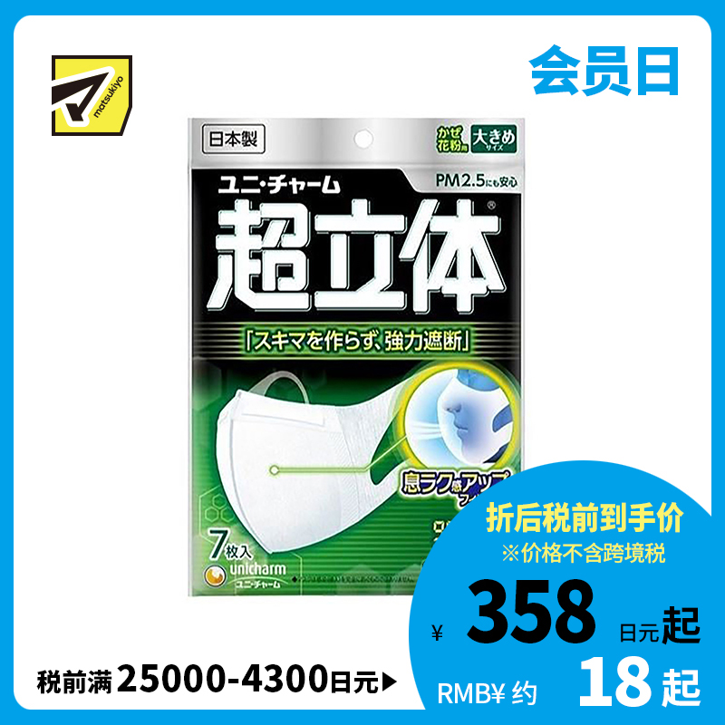 [商品名称]UNICHARM尤妮佳 超立体薄款透气防脱妆小颜清凉防飞沫超立体口罩 大尺寸 7个