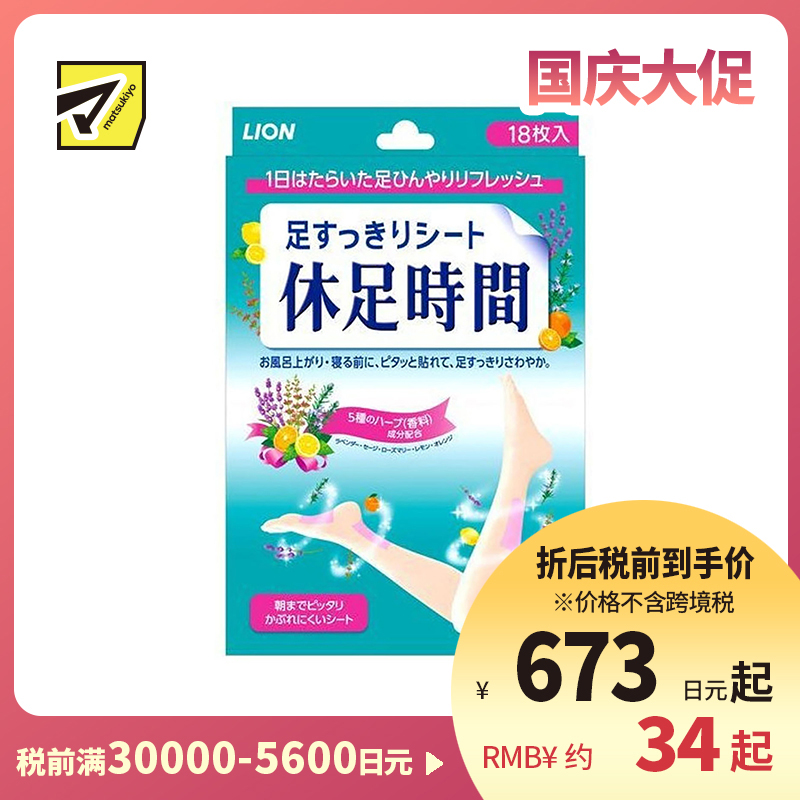 [商品名称] LION狮王 休足时间轻松舒爽足贴 缓解疲劳 18片