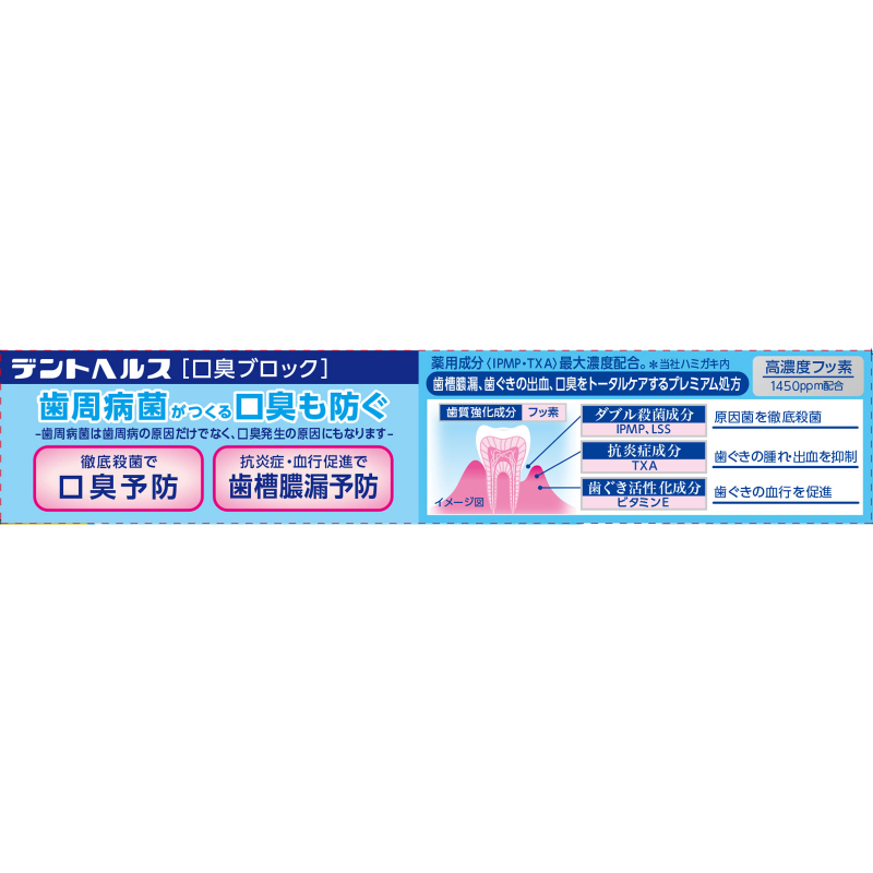 [商品介绍] 如果在意与人交谈时的气息,却又担心牙龈出血、牙周问题反复出现,这支预防口臭 深度杀菌 牙龈护理 牙膏,正是为这样既关注口气清新,也重视牙龈健康的人士准备。不仅帮助预防口臭,还针对牙周病菌引起的口气问题进行护理。配方中添加吸附成分葡萄糖酸铜,有助于清除异味来源。并可深入牙周袋内,杀菌成分IPMP(异丙基甲基苯酚)作用于口臭原因菌,帮助预防口气困扰。同时搭配抗炎成分TXA(氨甲环酸),帮助缓解牙龈红肿与出血。维生素E促进牙龈血液循环,为牙龈状态提供支持。采用清爽的清新薄荷香型,让刷牙后口气清新感更持久。含高浓度氟1450ppm,在日常护理中帮助预防龋齿。在关注口气的同时,也兼顾牙龈与牙齿的整体护理。