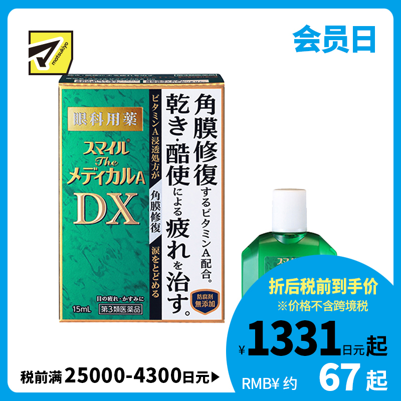 [商品介绍]含有最大量的角膜修复成分维生素A(50,000单位,符合一般眼科用药生产销售批准标准的最大量配方),能够渗透到轻微受损的角膜细胞中。同时缓解由于干燥和过度用眼引起的疲劳。不含清凉剂,无刺激感、不含防腐剂不含防腐剂(如苯扎可尼酰氯等)。适用于眼睛疲劳、眼睛模糊(如眼屎较多时)、眼病预防(游泳后、灰尘或汗水进入眼睛时等)、缓和佩戴性隐形眼镜时的不适感。※请勿在佩戴隐形眼镜的情况下使用。