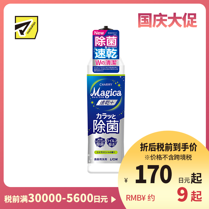 [商品名称]狮王 CHARMY Magica 速干 快速除菌 去油除污 洗洁精 220ml 柑橘薄荷香气 去除顽固污渍