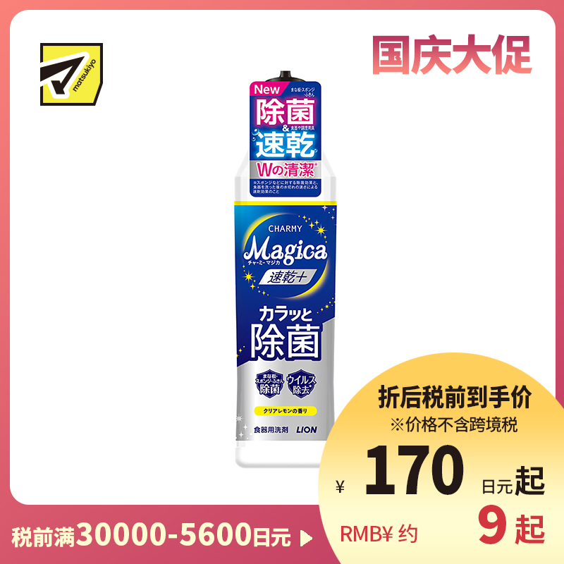 [商品名称]狮王 CHARMY Magica 速干 快速除菌 去油除污 洗洁精 220ml 清新柠檬香气 去除顽固污渍