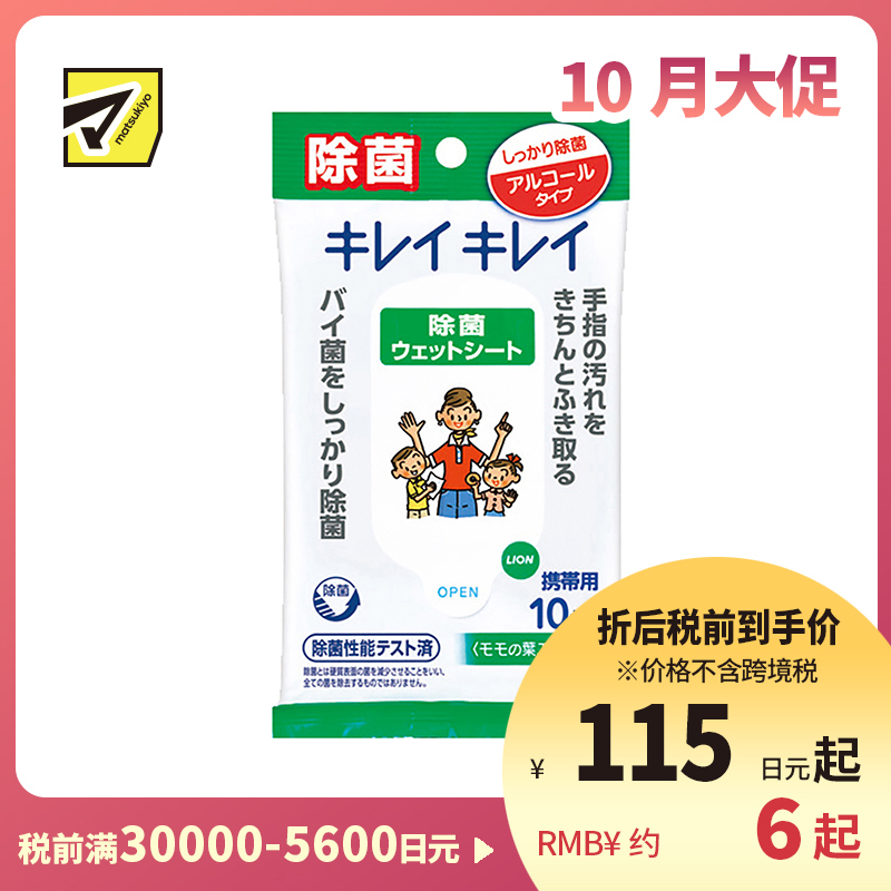 [商品名称] LION狮王 趣净除菌湿纸巾 含酒精型 儿童手口可用 10片装