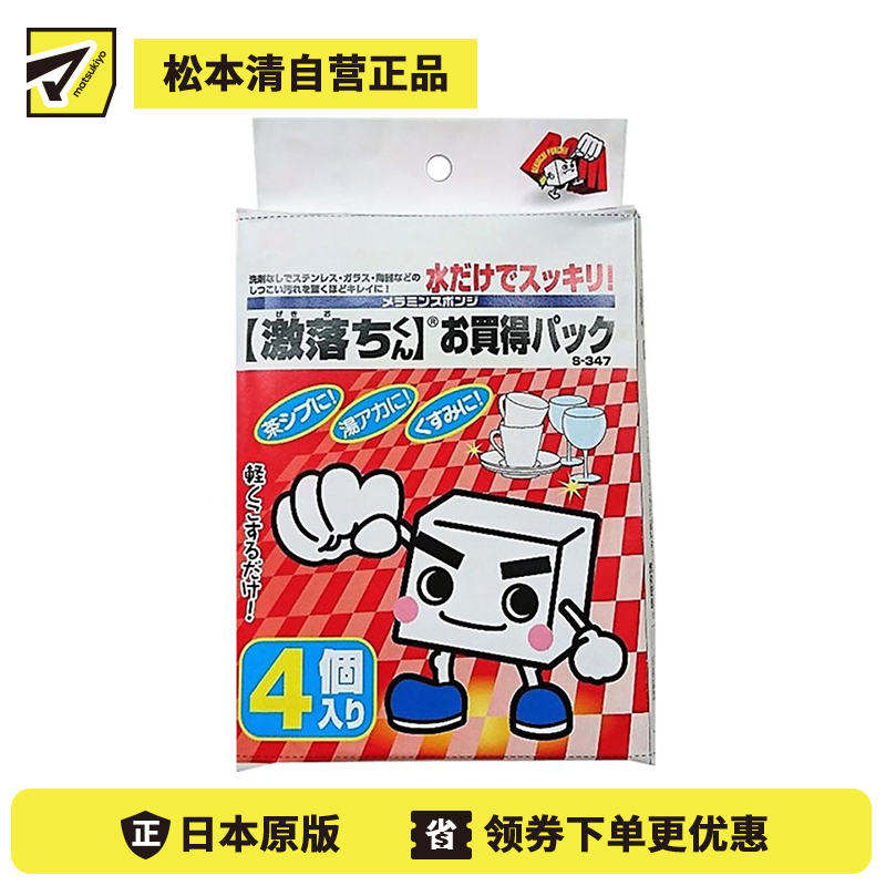 [商品名称]matsukiyo松本清 激落君免清洁洗剂强力去污万能清洁海绵擦 超值装 4个