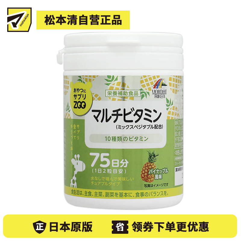 [商品名称]UNIMAT RIKEN ZOO 复合多种维生素咀嚼片儿童成人孕妇补充维生素 菠萝味 150片