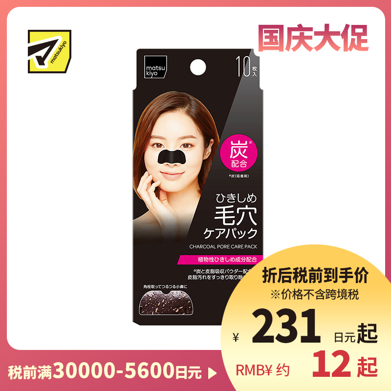 [商品名称]1号仓-松本清 黑炭洁净 毛孔收缩鼻贴 10片 去黑头 温和清洁