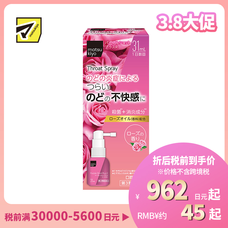 [商品名称]松本清matsukiyo 缓解喉咙炎症喷剂 增强版 玫瑰味 31ml