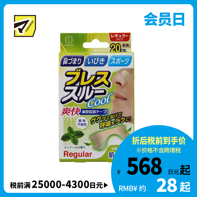 [商品名称] 小久保 鼻腔舒畅 舒缓鼻塞打鼾 鼻腔扩张辅助 呼吸贴鼻贴 肤色 标准尺寸 20枚 无刺激感 顺畅呼吸 日常佩戴