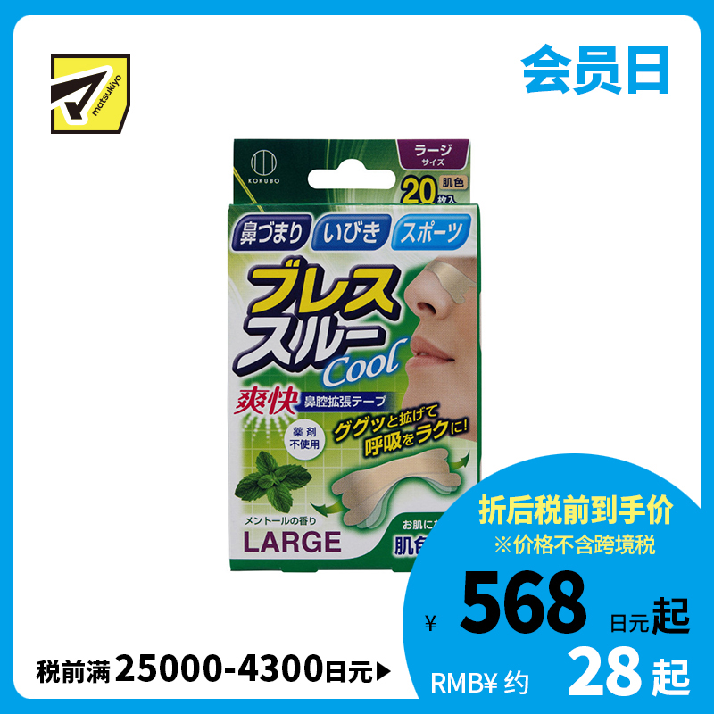 [商品名称] 小久保 鼻腔舒畅 舒缓鼻塞打鼾 鼻腔扩张辅助 呼吸贴鼻贴 肤色 大尺寸 20枚 无刺激感 顺畅呼吸 日常佩戴