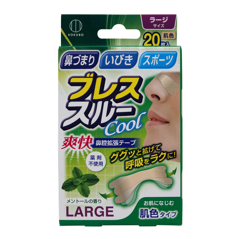 [商品介绍] 适合经常在睡觉时鼻子堵住、张口呼吸,早上起床喉咙干涩不舒服的人士。这款辅助呼吸贴为大尺寸款,通过附带弹力塑料条的贴片,在鼻骨下方轻轻撑开鼻腔,让空气通道更顺畅,帮助在夜间保持自然鼻呼吸,不易因鼻塞而打鼾,也减少口干不适。此款为清凉型,带有薄荷清香,使用感清新舒适。除了睡眠时使用,亦适合运动时佩戴,提升呼吸效率。每盒20枚入,肤色款设计,贴在鼻子上也不突兀,适合日常佩戴。