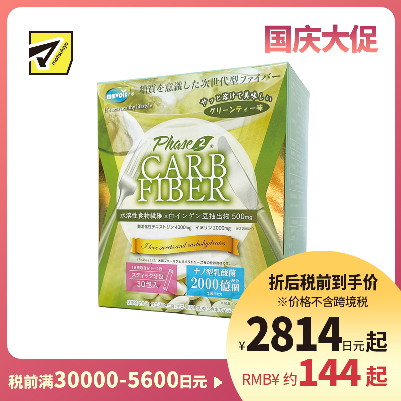 [商品名称]VOIS Phase2 碳水控制 乳酸菌饮品 膳食补充剂 膳食纤维白腰豆冲泡粉 绿茶风味 30包 抗性糊精 菊粉 白肾豆