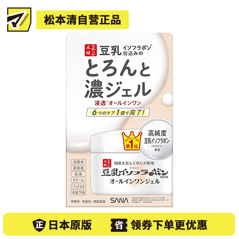 [商品名称]SANA莎娜 一瓶六效 高保湿浓润 提升肌肤水润度 啫喱面霜 100g 清润型 温和无添加 清爽不粘腻 基础护理