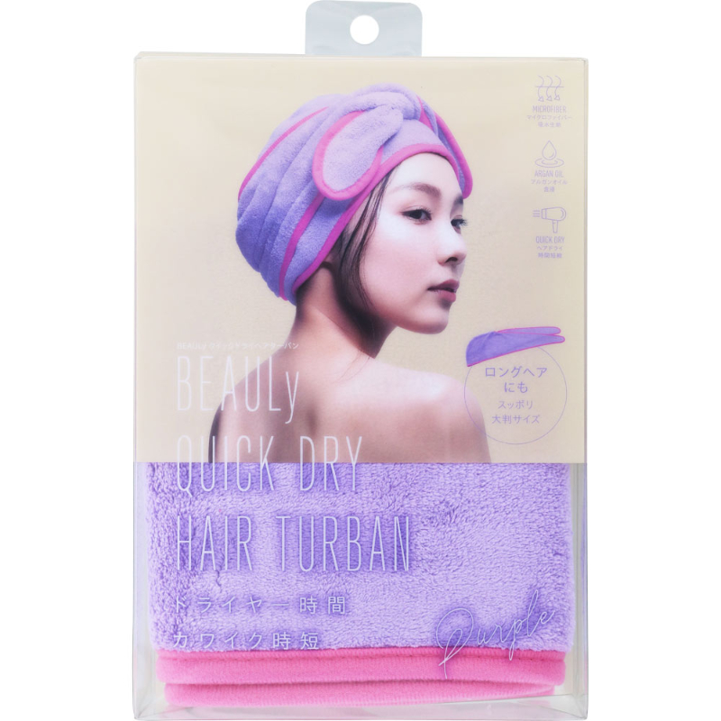 1号仓-蔻吉特 含阿甘油 弹力带设计 瞬吸速干 干发帽毛巾 1条 紫色 BEAULy 减少吹风时间 大尺寸 松紧设计