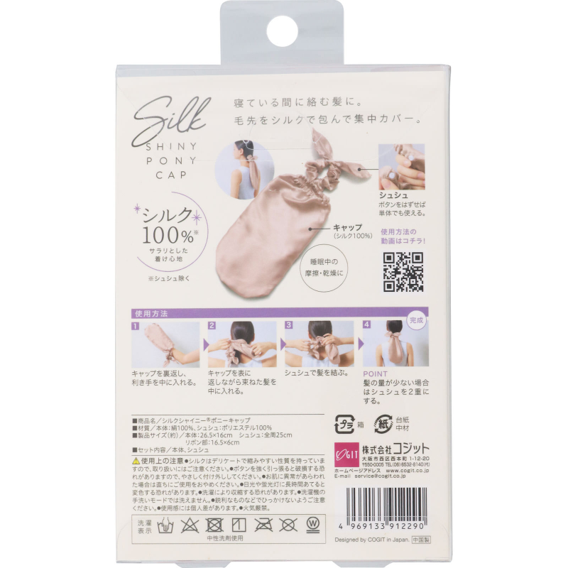 [商品名称] 蔻吉特 100%真丝 减少摩擦 发尾护理 防打结发袋 1个 香槟粉 防静电 睡帽睡眠发带 触感顺滑