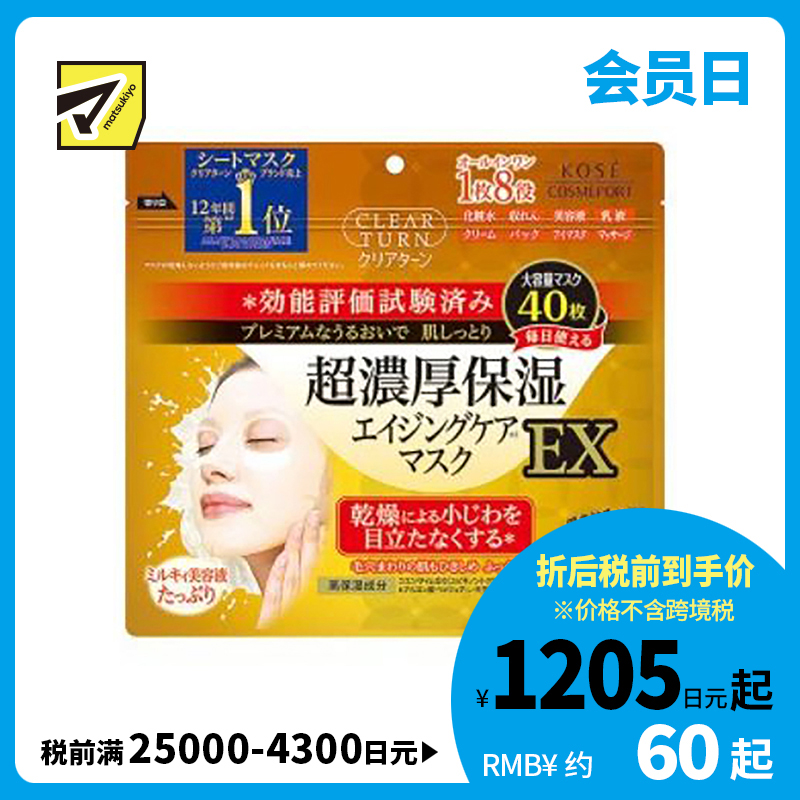 [商品名称]KOSE高丝 CLEAR TURN 超浓厚保湿抗衰面膜 40片