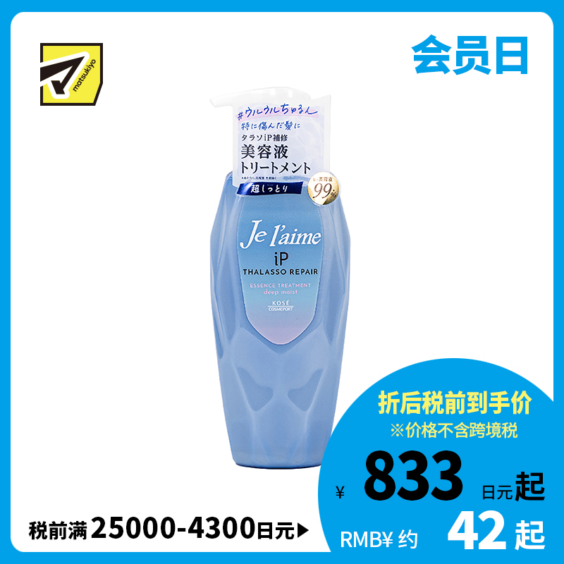 [商品名称]高丝Je l'aime IP 深层保湿 氨基酸护发素 滋润型 柑橘花香 480ml KOSE 改善干枯粗硬 染发烫发修护