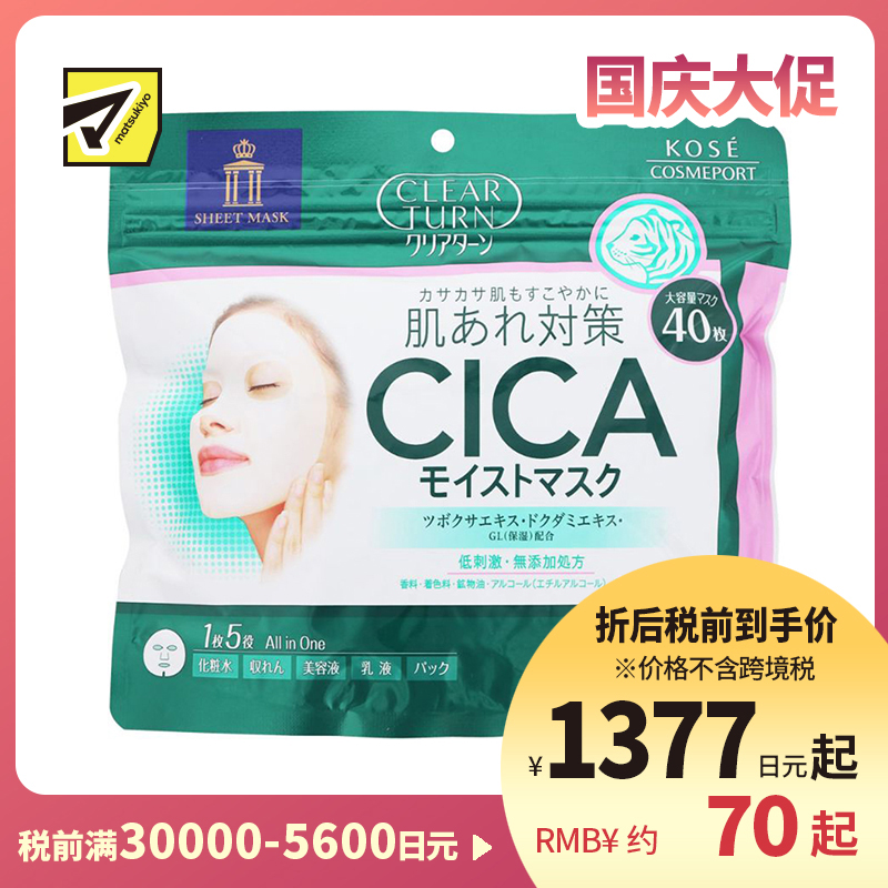 [商品名称]KOSE高丝 CLEAR TURN CICA 5效合1保湿低刺激面膜 大容量 40片