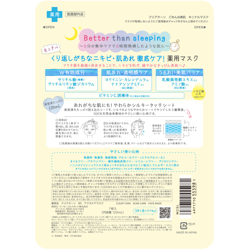 [商品名称] 高丝CLEAR TURN 抑制痘痘生成 舒缓肌肤不适 温和亲肤 面膜 7片 痘肌护理 水杨酸 改善肌肤粗糙