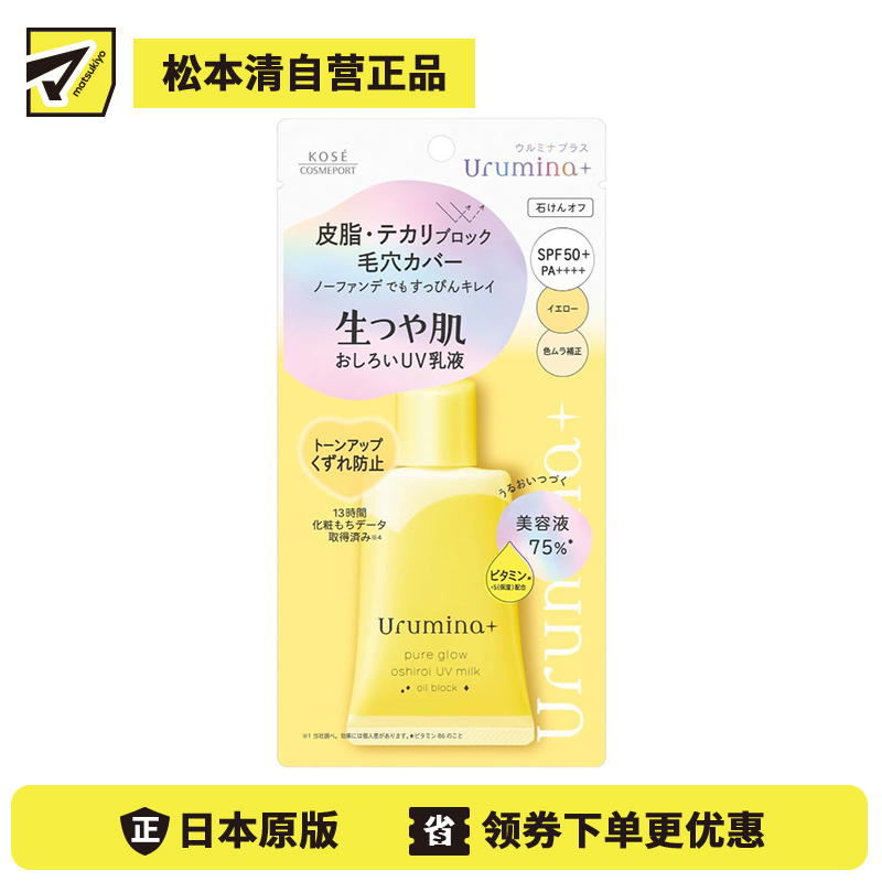 [商品名称] 高丝Urumina+ 提亮肤色 素颜美肌 控油素颜乳液 黄色调 35g 吸附多余油脂 修饰毛孔 改善肤色不均 轻盈滋养