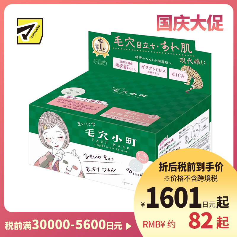 [商品名称]高丝CLEAR TURN 紧致毛孔 毛孔小镇积雪草大米面膜 30片 KOSE 调节水油平衡 舒缓补水