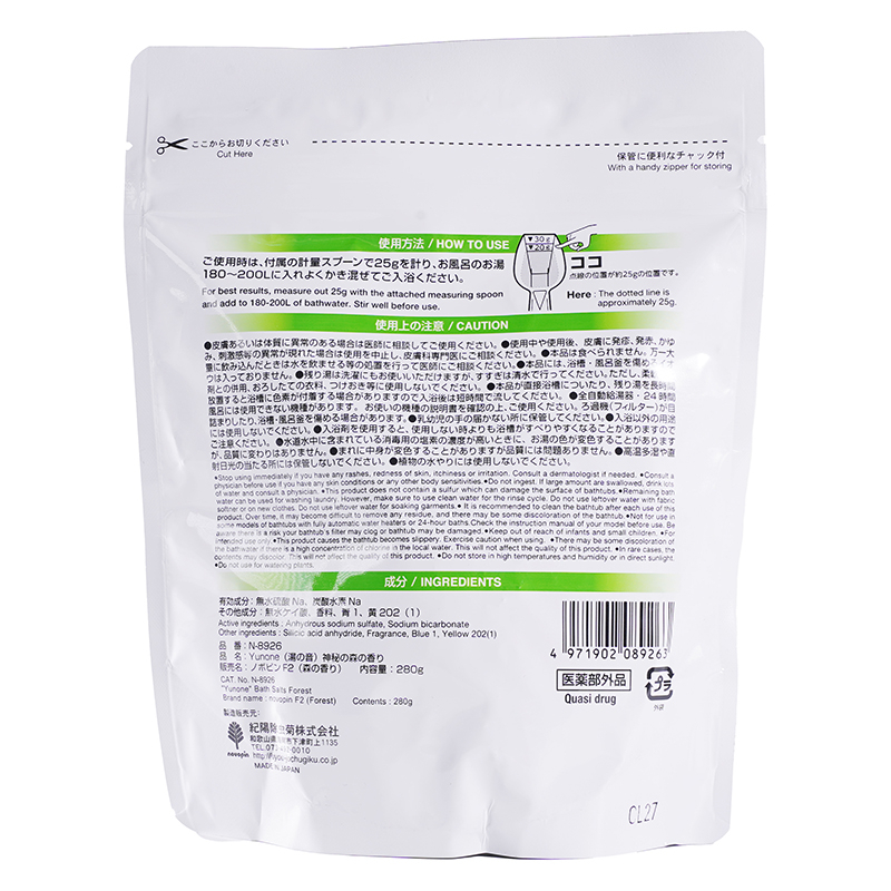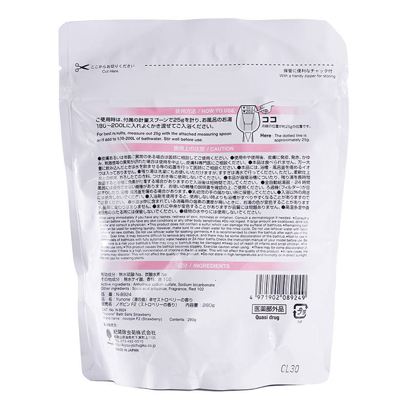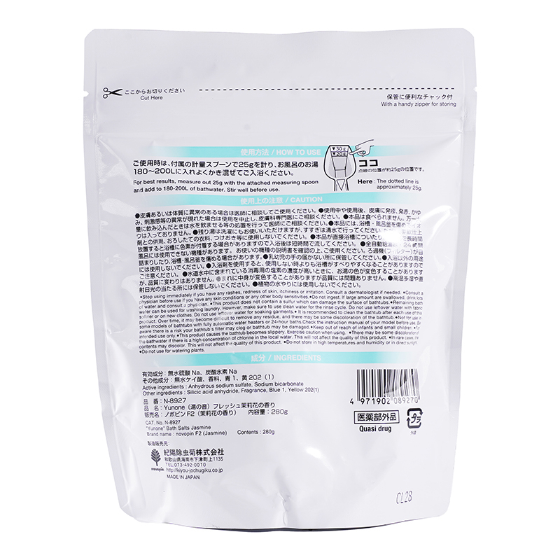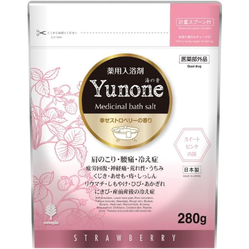 [商品介绍] 忙碌了一整天,你或许只是想安静地泡个澡,让身体慢慢放松下来。Yunone入浴剂采用粉末型设计,在温热的水汽中溶解开来,伴随柔和的香气与变化的汤色,让每天的沐浴时间多一份仪式感。无论是下班后的疲惫、换季时对寒冷的在意,还是想给自己一个不被打扰的片刻,都可以在家中轻松使用。280g自立袋包装,附带量勺,按一次约25g的用量计算,可使用约11次,可根据浴缸水量灵活调整,适合日常持续使用。无论是甜美的草莓、清爽的柚子、静谧的森林、清新的茉莉还是恬静的薰衣草,五种天然氛围的香气伴随治愈的汤色,在温热的水汽中为你抚平肌肤的干燥与起皮,让紧绷的情绪随之舒展。拉链设计便于收纳保存,日本制造,让你在熟悉的浴室里,也能感受到被温水包裹的安心感。
