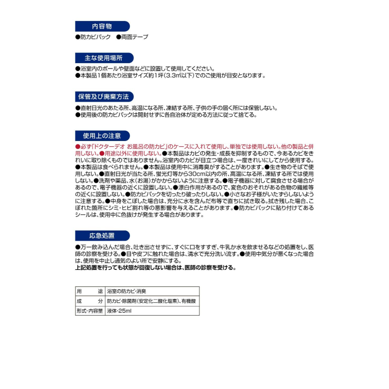 [商品名称] CARMATE 浴室防霉除菌消臭挂贴包 替换装 1个 Dr.Deo 无香料 长效防止浴室发霉 黑色霉菌 抑制细菌滋生 60天持久保护