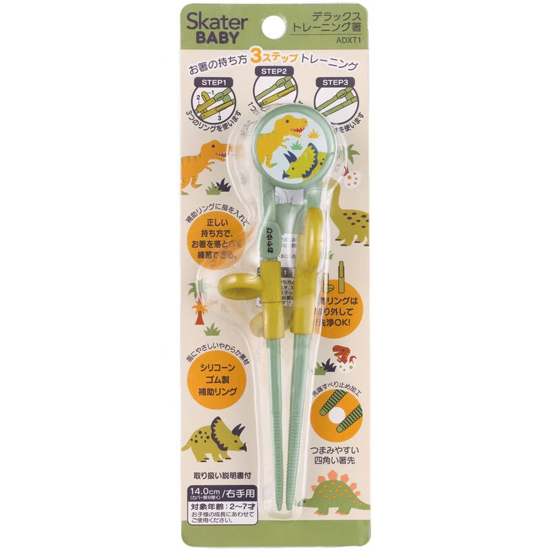 [商品名称] 斯凯达 分阶段训练设计 防滑处理 3阶段练习 儿童训练筷子 1双 三环款 恐龙造型 Skater 2岁以上适用 耐热安全 柔软硅胶指环