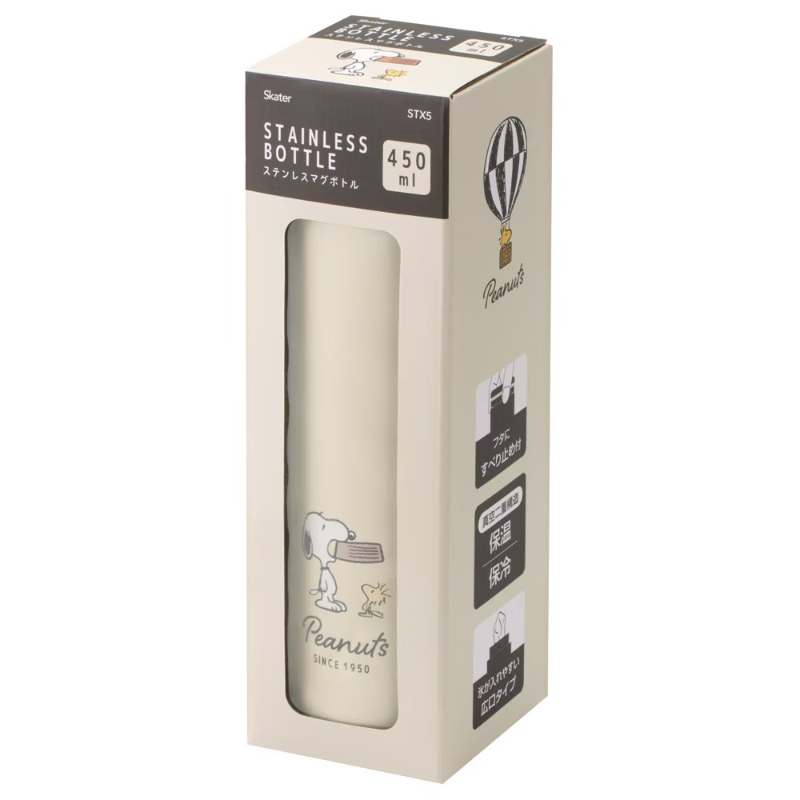 [商品名称] 斯凯达 双层结构设计 保温保冷 不锈钢保温杯 450ml 1个 史努比图案 Skater 防滑瓶盖 结实耐用