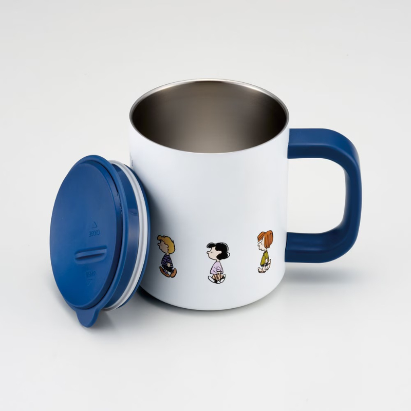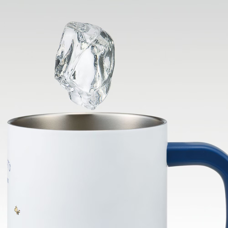 [商品介绍] 采用真空断热双层结构设计,可用于保温或保冷,帮助减缓杯内饮品温度的变化。即使加入冰块,杯身外侧也不易出现结露情况,使用时更清爽;盛装热饮时,外侧相对不易发烫,搭配手柄设计,拿取更方便。杯盖为滑动式饮口结构,无需完全取下即可饮用,适合在办公桌或家中使用。杯底采用防滑橡胶材质,放置时更加稳妥。容量约 330ml,适合日常咖啡、茶饮或冷饮使用,外观融入史努比系列角色元素,兼顾实用性与日常使用的趣味感。