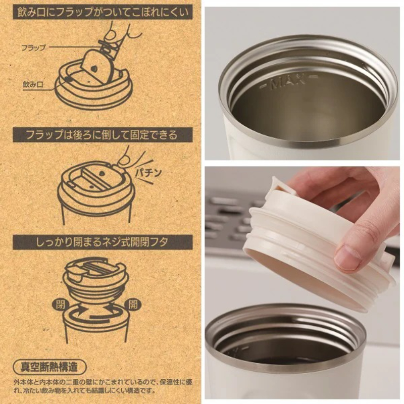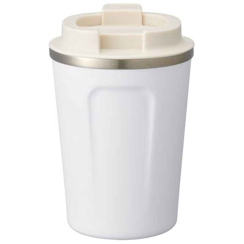 [商品介绍] 杯身采用真空双层结构设计,适合盛装热饮或冷饮,即使倒入冷饮,也不容易出现外壁结露的情况。整体尺寸约为直径91mm、高136mm,放在办公桌或随手拿着都不会显得笨重。盖上杯盖后的实际使用容量为350ml,刚好是一杯日常咖啡的分量。杯盖为旋拧式设计,并搭配翻盖饮口和密封垫圈,日常携带放入包中更安心,但需注意并非完全密封,外出携带时仍建议保持直立。