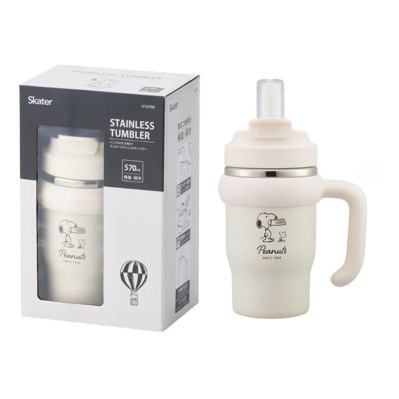 [商品名称] 斯凯达 双层结构设计 保温保冷 不锈钢双饮口杯 570ml 1个 史努比图案 Skater 带手柄 大容量 防滑杯底