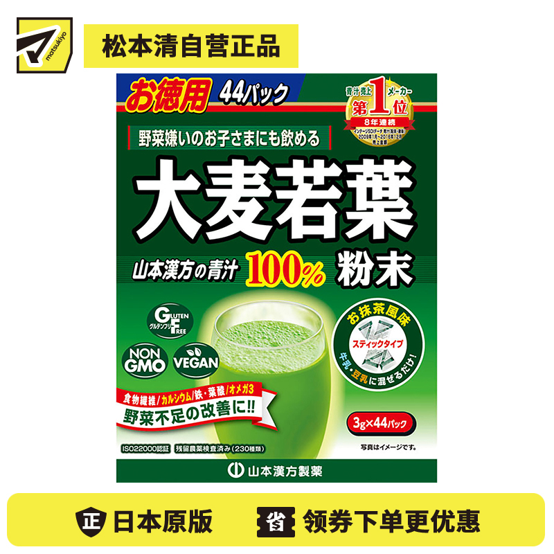 [商品介绍]改善蔬菜不足美味的青汁100%讨厌蔬菜的孩子也能喝44包德装ISO22000认证无残留农药检测(230种)只需加入牛奶、豆浆即可!抹茶风味1包3克中,加入了约39g生大麦嫩叶。请100%品尝真正的感觉。无农药栽培、无添加