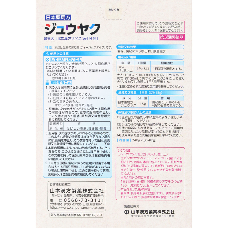 [商品名称] 山本汉方 改善便秘 尿量减少 鱼腥草煎剂 茶包 5g×48包【第3类医药品】大容量包装 效果温和 缓解便秘