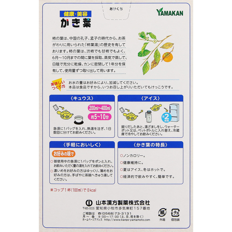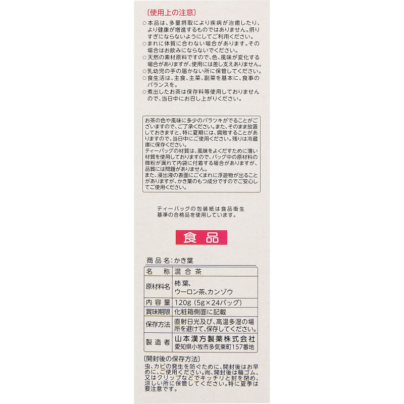 [商品名称] 山本汉方 草本茶饮 轻盈0热量 柿叶乌龙茶茶包 5g×24包 冷热皆可 独立包装 清爽风味