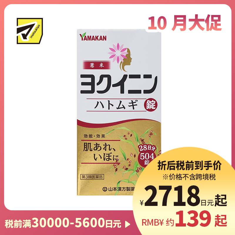 [商品名称]山本汉方 薏米仁片 缓解皮肤粗糙扁平疣祛湿气水肿 促进新陈代谢激活皮肤免疫力 504片【第3类医药品】