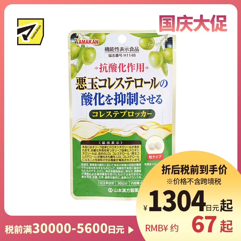 [商品名称]山本汉方 抑制低密度胆固醇颗粒 橄榄叶提取物羟基酪醇成分 防止胆固醇氧化 60粒